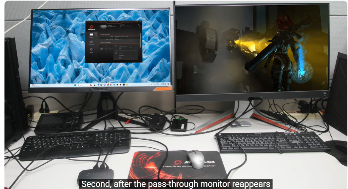 HDMI ケーブルをキャプチャーデバイスの HDMI 出力ポート に再接続した後、パススルーモニターに映像が正常に表示されていることを確認してください。