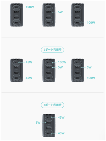 となってます。100W充電があるので外出時やノートPC、iPadなどでもいけますね。