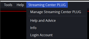 インストール完了後に OBS Studio を起動すると、上部タスクバーに「Streaming Center PLUG」が表示されますので、Manage Streaming Center PLUG をクリックしてください。