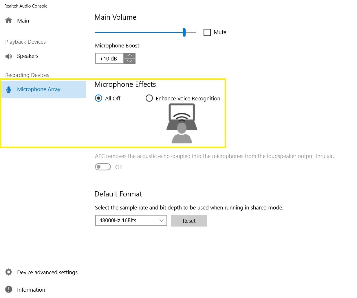 ASUS製のマザーボードや、ノートPCをご使用の場合は、ASUSの設定ソフトウェアでノイズキャンセラーをOFFにしてください。