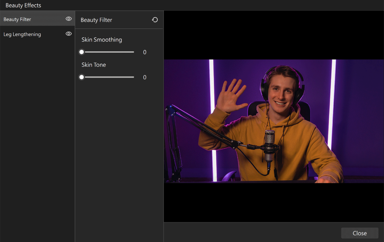 The Streaming Center's user interface is designed to be as intuitive and simple as possible, with beginners and professionals able to use it immediately once the software is launched. It also offers extensive customization options, including built-in beauty filters and leg-lengthening adjustments, allowing you to enhance your on-screen presence and look your best.