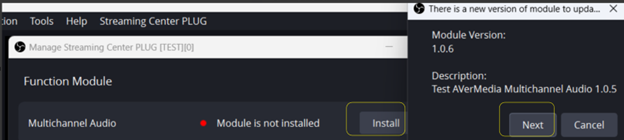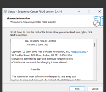 インストール後、Streaming Center PLUG を実行しインストールしてください。