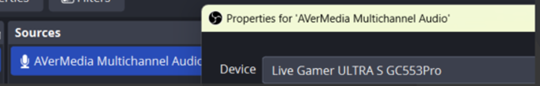 Source セクションに進み、「AVerMedia Multichannel Audio」を選択してください。