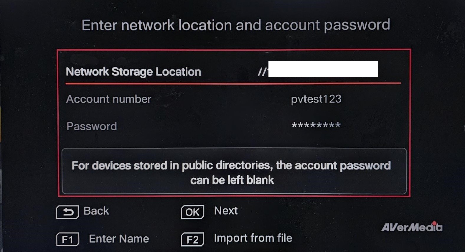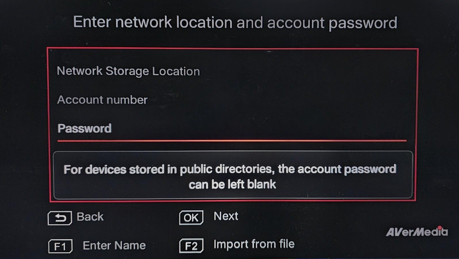 - Under "Enter Network Location and Account Password," press F2 to Import from File.