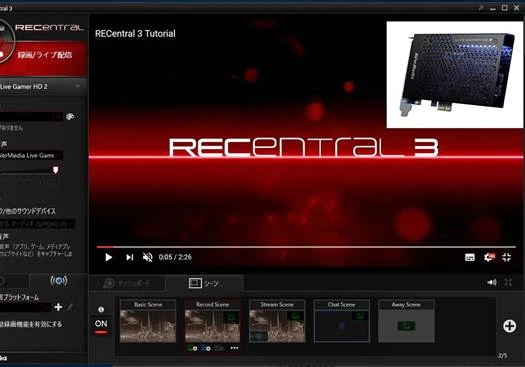 『RECentral(最新バージョン:Ver 4.x - PC版)』は録画・配信・動画共有をするためのソフトウェアです。「シングルモード」「マルチモード」両モードを搭載し、簡単設定で、録画、配信画面のカスタマイズができます。各種動画配信サービス(YouTube、Twitch、ニコニコ生放送、Facebookなど)のアカウントを登録しておくだけで、すぐに配信(マルチ配信対応)が楽しめます。ピクチャー・イン・ピクチャー(PiP)、クロマキー合成など、多機能に対応しているので、自分で好きなレイアウトを作って配信することができます。簡単な設定で、プロのような実況者になれます。 多機能ながら直感的に操作でき、初心者からプロ実況者まで、幅広く使えます!