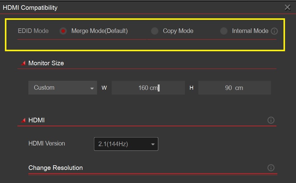 キャプチャーデバイスと接続されたテレビ/モニターの両方の EDID 情報を統合し、双方が対応する解像度とリフレッシュレートを選択して最適な互換性を確保します。