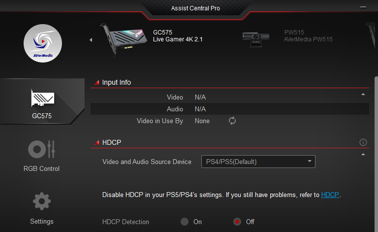 その場合は、Assist Central Pro または RECentral の設定で HDCP を無効にしてください。