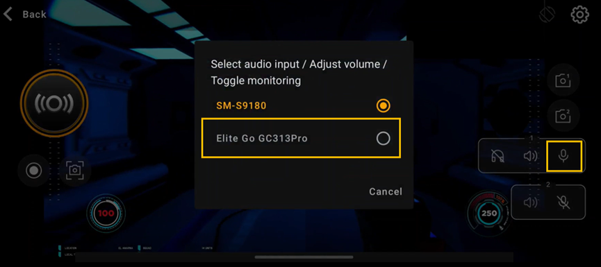 - ヘッドセットアイコンをタップして 音声モニタリング を有効にします。