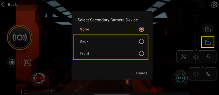 - カメラアイコンをタップし、メインカメラデバイスを信号ソースに設定します。
