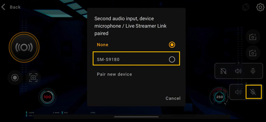 - カメラソースの下にある マイクアイコン をタップします。