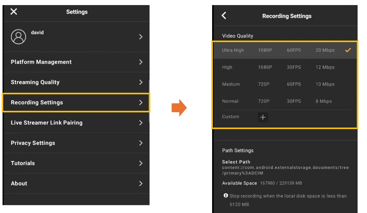 - Streaming Quality をクリックして 映像品質 を設定します。